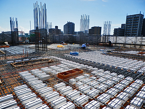 4階床 配筋検査 先程 4階床の配筋検査を行ってきました。 今週の行程が順調に進んだので 明日と明後日は大工さんがお休みです。 毎日暑い中頑張ってもらっているので ゆっくり身体を休めてください。 週明けの月曜日にコンクリート打設予定です。 事務所の駐車場に 夏ですね~ でも今年は心なしか蝉が少ないような気が... 2013/07/19 18:32カルム吉塚 Tweet