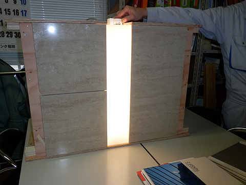 これはふたつあるエントランスホールを結ぶ 長さ25mの連絡通路に設ける照明の模型です。