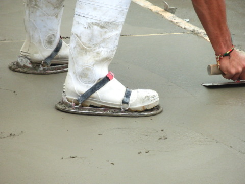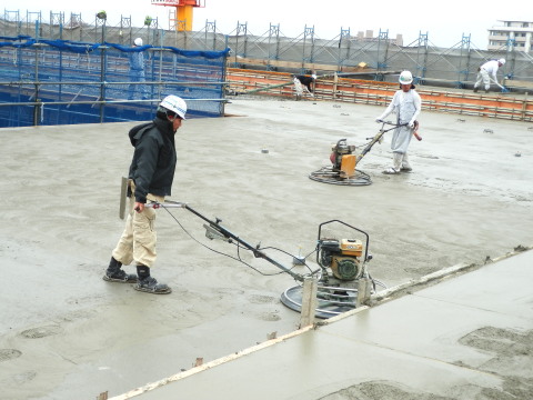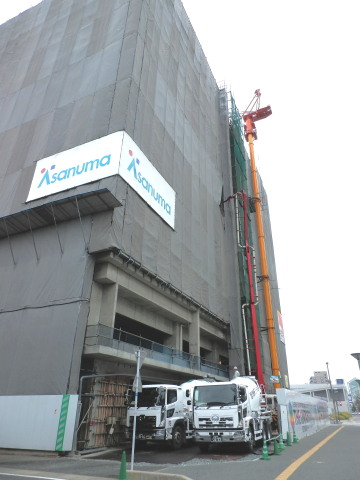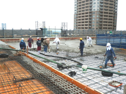 1階から屋上まで生コンクリートをポンプ車で圧送し