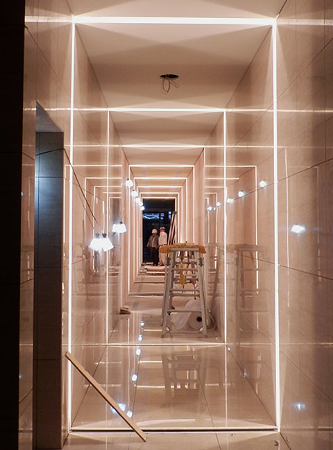 2つあるエントランスホールを結ぶ25mの『光のトンネル』