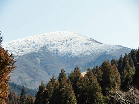 この露天風呂からは 湧蓋山が望めますが 今日はうっすら雪化粧。