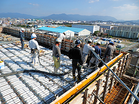 上棟 前回5階施工の報告から いきなり屋上コンクリート打設の報告へ。 ということは めでたく「上棟」ということになります。 今月末からのオープンルームへ向け 住戸内の工事も着々と進んでおります。 2013/11/06 16:48カルム吉塚 Tweet