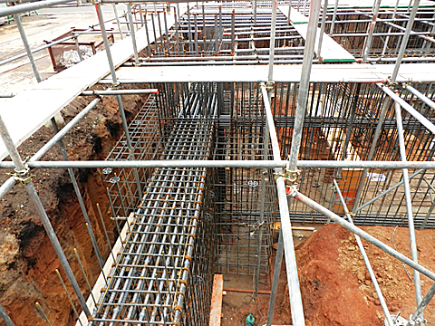 基礎配筋完了 本日 基礎配筋が完了しました。 塔状比(建築物の高さに対する幅との比)が高い為 フーチング(柱の最下端の地盤に面する部分)がやたらでかいです。 ・ ・ 明日から基礎型枠組み立ての工程に入ります。 ・ ・ ・ 2015/01/06 18:54カルム南福岡 Tweet