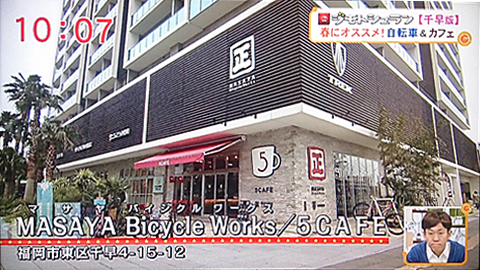 特集?? 昨日の「ももち浜ストア」でThe LINDOSの特集があってました。 ・ ・ ・ ・ ・ ・ ・ なんて ・ ・ ・ ・ ・ 『ジモトシュラン”千早編”』というコーナーで 1階に入居している「MASAYA&5CAFE」の紹介でした。 それにしても(元モー娘の)中澤さん 「お洒落な自転車屋さんって感じが・・・」って ・ いやいや充分お洒落な自転車屋さんでしょう。 ついでに建物も ・ ・ ・ 2015/03/17 20:03リンリン 第4弾! Tweet