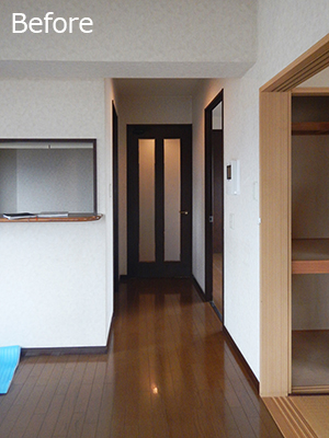 K邸 BEFORE AFTER 所在 福岡県大野城市 家族構成 夫婦 構造規模 SRC造13階建 12階部分 延べ面積 78.93㎡ 竣工 2017年08月 カテゴリー リノベーション 施工:LIXILリフォームショップ春日店