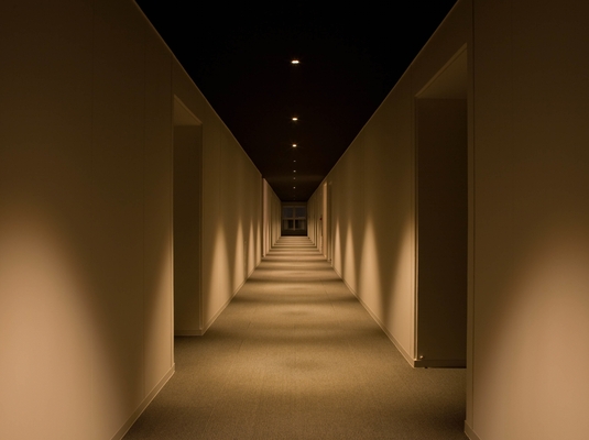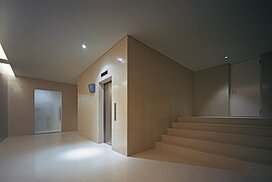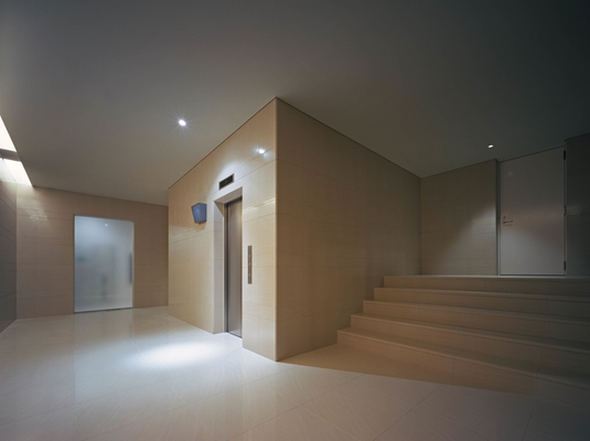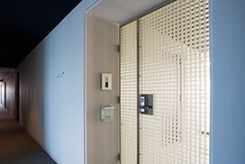 3つ目はLINNBRANCと同様中廊下型を採用しているが、その床に使用したのがタイルカーペット。ホテル的なイメージに近づけようということで採用。出来ることなら絨毯といきたいところであったがメンテナンスや予算等を考えて断念。また各住戸メーターを集中式としてメーターボックスの扉を少なくして高級感を演出している。更に照明も当時出始めたばかりのLEDをいち早く採用して、他の共同住宅にはない独特の空間を演出している。