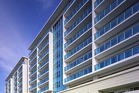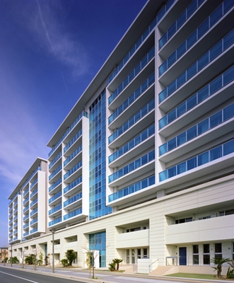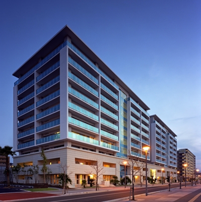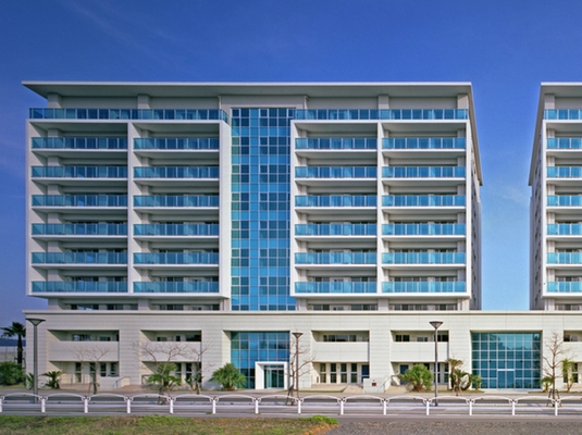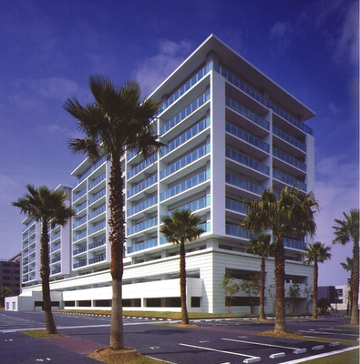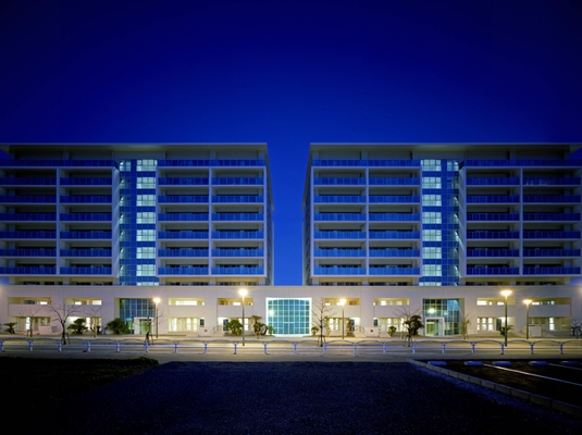 4つ目は外構と駐車場の在り方。リゾートのイメージをより際立たせる為、屋外に出てくる車を少なくし且つゆったり見せること。その為に建物内部にいかに駐車場を取り込むかに相当苦労をした。結果150戸の住戸に対して166台の駐車場を全て自走式で確保しながらもリゾートのイメージを際立たせることに成功した。